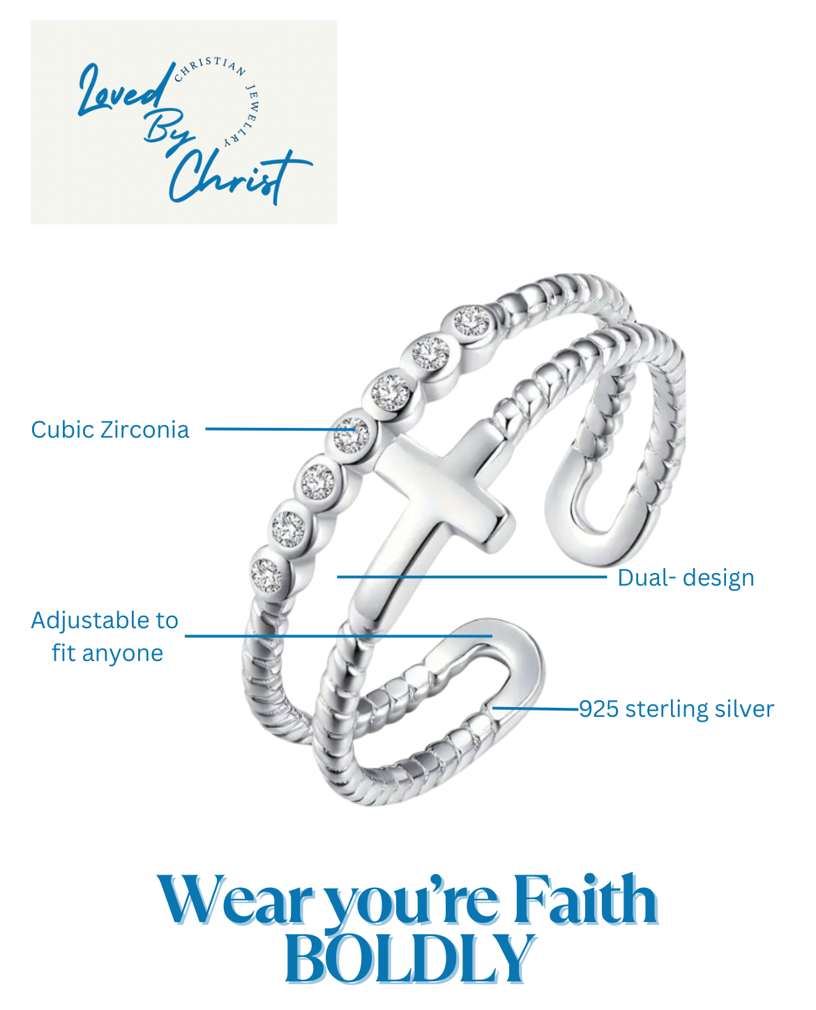 ✝️ Faithfully Joined Cross Ring (Silver & Gold)